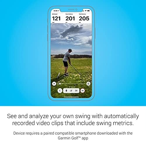 - See and analyze your own swing with automatically recorded video clips that include the metrics of that swing when paired with a compatible smartphone with the Garmin Golf app