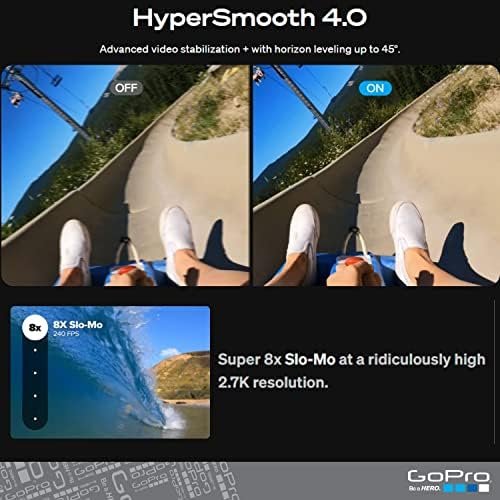 • HYPERSMOOTH 4.0: HyperSmooth has never been smoother, and it’s easy to dial in the best stabilization at all times. Plus, get even better low-light performance and horizon leveling with a higher tilt limit, so your footage looks perfectly straight when you want it.