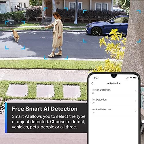 • Free AI Detection and Activity Zones: Get instant push notifications when motion is detected, be it a person, a pet, a vehicle, or movement in one of your custom Activity Zones. Your personal sentry to monitor your driveway and beyond. For optimal results, remove any obstructions such as windows or screens in front of the camera. Glare or obstacles will affect the camera’s ability to detect motion.